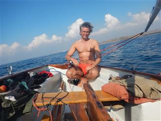 Im 3. Teil der großen Küstenreise segele ich eine 3,70 Meter lange, französische Zef-Jolle aus dem Jahr 1966. Ich habe das Boot in schlechtem Zustand in Belgien für 200 Euro gekauft und komplett neu aufgebaut. Mit einer Zef-Jolle hatte ich in den 80er Jahren meine ersten Segelerfahrungen gemacht, als ich von Patmos nach Kos und von Genua nach Barcelona mit der ersten "Omen" segelte. Aus diesem nostalgischen Grund hatte ich beschlossen, den 3. Teil der Reise mit einer Zef, meinem persönlichen Ur-Boot, zu wagen.