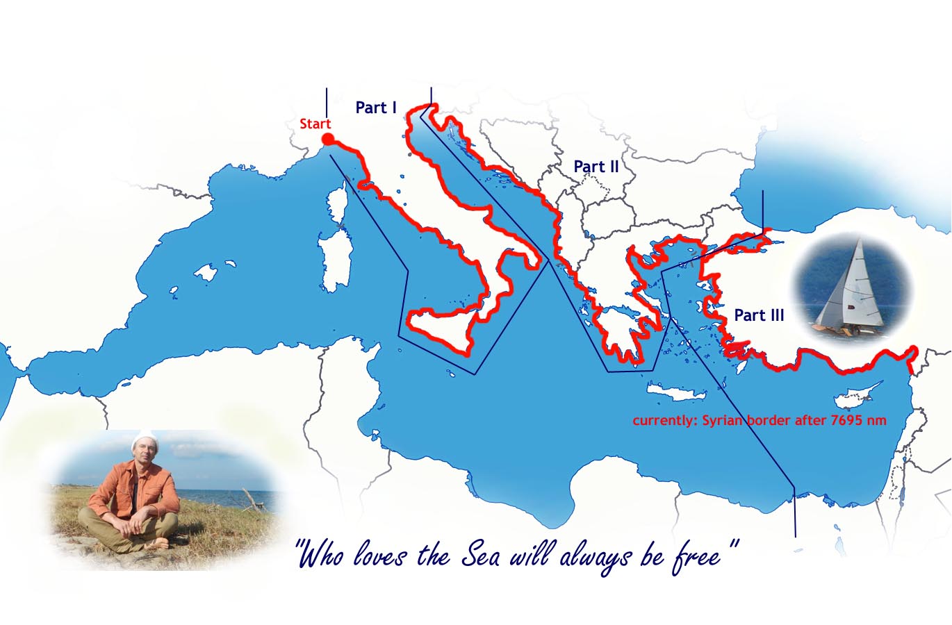 On this "Journey for Life" I sail on small boats always following the coast. Since 16 years and in 36 stages, so far. When I sail on I feel like "being on my way" - there is a distant finishing line, but I seldom think about it.