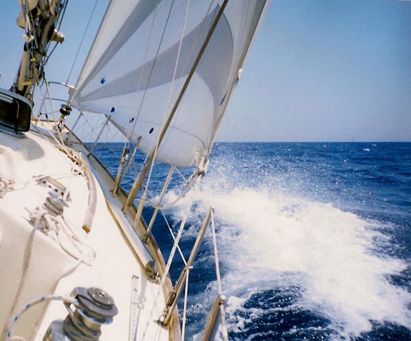 Unter Spinnaker und Jockey Pole Richtung "Felsen" (Gibraltar)