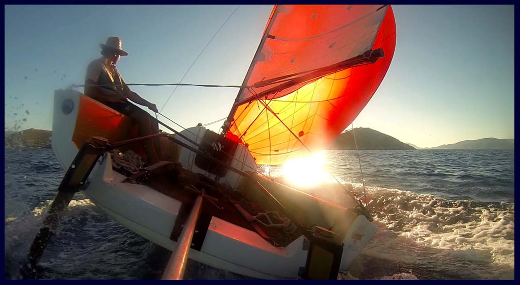 Es ist die moderne Art zu segeln: Gleitfähiger Rumpf mit breitem Heck, Chines, Doppelruder, großer Gennaker, Carbonrigg, Squaretop Großsegel.