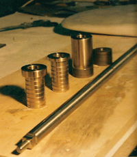 Ruderwelle aus A4 Edelstahl, selbstgedrehte Lagerbuchsen aus Bronze - stark genug für eine 12 Meter Yacht.