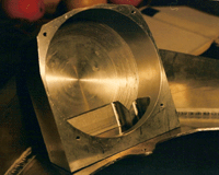 Die Kompassaufnahme steht vor dem Eloxieren lose auf ihrem Unterbau. Sie ist aus einem massiven Aluminiumklotz gedreht und gefräst, passend für einen C.Plath Kompass..