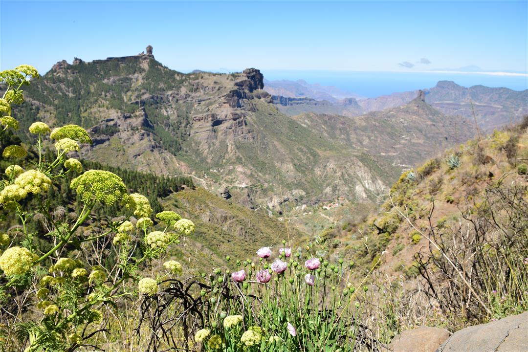 Auf den Kanaren ist es besonders in den Bergen schön. Hier Gran Canaria mit dem Teide von Teneriffa am Horizont.