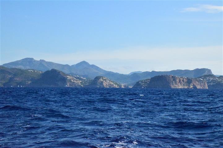 Einige der glücklichsten Tage erleben wir an Bord, hier beim Blick zurück nach Mallorca nach dem Ablegen von Port Andratx mit Kurs Ibiza.