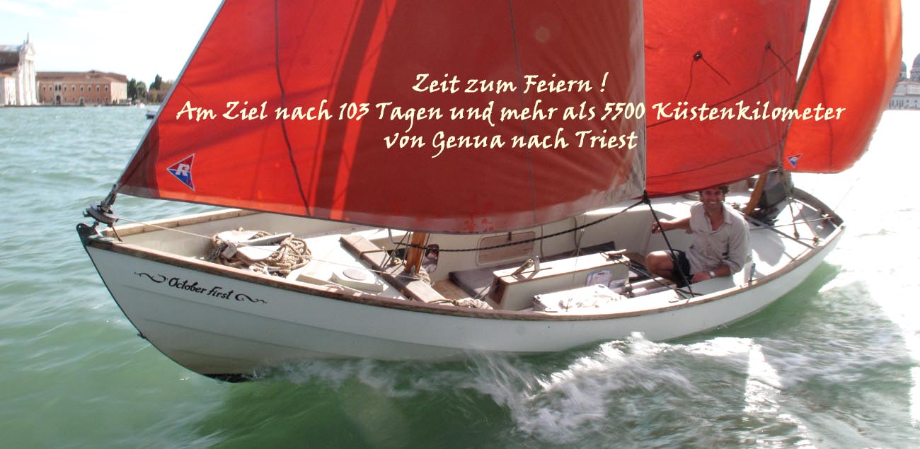 Dieses Abenteuer beginnt in Genua. Mit meiner "October First", einer offenen Jolle vom Typ Drascombe Longboat, folge ich der Küstenlinie Italiens nach Süden, weiter und immer weiter bis es irgendwann wieder zurück nach Norden ging und ich Triest auf der anderen Seite des "Stiefels" erreichte.