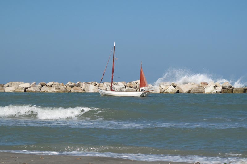 Häufig Gegenwind in der Adria mit Kurs nach Norden Ankerplatz im Schutz einer Steinschüttung bei Campofilone