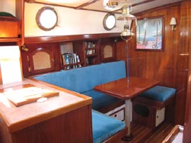 Bis jetzt die größte, mit Abstand die schwerste, der erste richtige Kutter, der erste Doppelender (wenn ich von meiner "Mer" einmal absehe). Zum ersten Mal: Radar, Windgenerator, Kurzwelle, Fernseher, Inverter und Staubsauger! - Und mit Sicherheit die schönste unter Deck, höchstens Gavdos VI könnte mithalten.