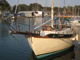 Heute ist Dienstag der 18. März 2008, es ist sechs Uhr früh, ich sitze am Münchner Flughafen im Cafe, habe bereits einen großen Karton und einen schweren Koffer über Paris nach Washington eingecheckt, alles Ausrüstung und warme Kleidung für das Boot und mich. Nach der Landung in den USA passierte ich die Immigration angenehm schnell, doch mein Koffer war in Paris hängengeblieben. Mit dem Mietwagen fuhr ich zum Boot. Ohne Schlafsack und ohne weitere Kleidung als die, die ich anhatte, hieß es eine frostige erste Nacht an Bord zu überstehen. Gleich am nächsten Tag kam das Boot per Travellift ins Wasser und auch mein verschollener Koffer wurde per Lieferservice bis an den Steg nachgebracht. Die Westsail liegt jetzt längsseits an Dock D. Ich räume, schaue, staune, lerne kennen, starte den Motor, schlage die Segel an, drehe das wirklich schwere Boot von Hand vom Dock aus um, als der Wind eine Pause macht und liege jetzt mit der Steuerbordseite an dem Holzsteg. Es ist eisig kalt, manchmal regnet es, der Wind ist böig mit bis zu 30 Knoten, doch als freitags die Sonne durchkommt geht es mir schon viel besser. Das Boot ist schön und ich turne herum. Ich bin abhängig vom Sonnenschein. Samstag bin ich immer noch in der Marina, denn gestern ließ sich der Motor wegen zu schwacher Batterien nicht mehr starten und ich konnte nicht vor Anker gehen. Heute treffe ich endlich Pat und Diane, die vorigen Eigner. Meine letzten Fragen zu ein paar mysteriösen Eigenheiten des Bootes konnte Pat auch nicht vollständig beantworten. Er ist wohl selbst weniger ein analytischer Hinterfrager als vielmehr ein Macher. Am späten Nachmittag kaufe ich noch Proviant und ein paar andere Utensilien und motore mit so weit als möglich wiederbelebten Batterien vor die Port Annapolis Marina und werfe den Anker.